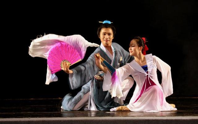 演出队伍庞大,但视觉上并不显得芜杂,舞美简约诗意,开篇由双人古典舞带领大家走进梁祝的爱情传说。序言的音乐选用著名音乐家何占豪作曲的小提琴协奏曲《梁山伯与祝英台》的曲调,用民乐形式演奏,熟悉的旋律唤起了观众对梁祝的初印象。
