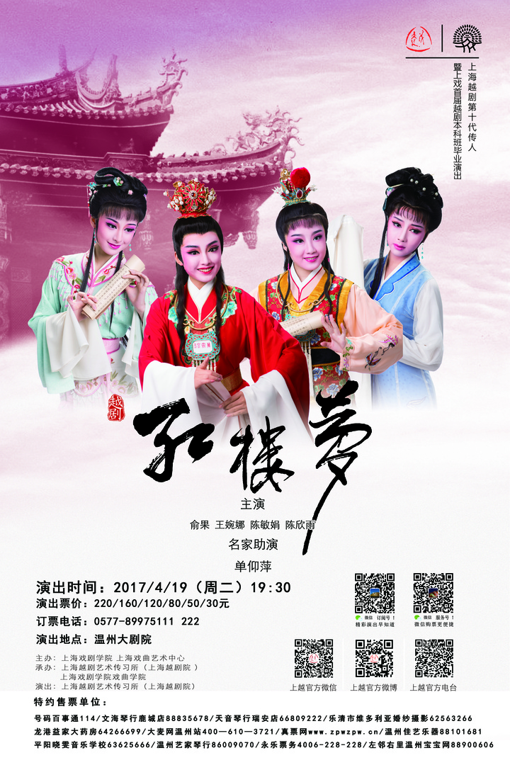 名家助演:章瑞虹、陈颖主演:董心心、杨韵儿、潘锡丹演出时间:4月18日19:30演出地点:温州大剧院·歌剧厅演出票价:30、50、80、120、160、220元
