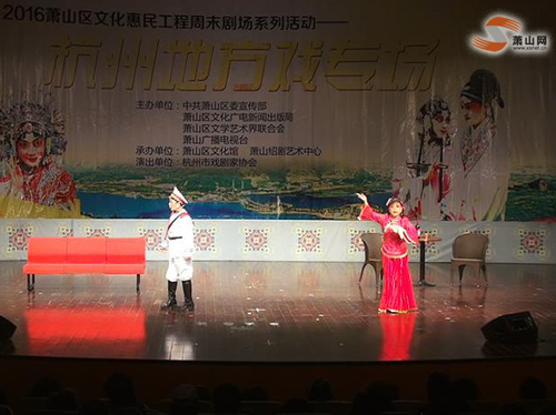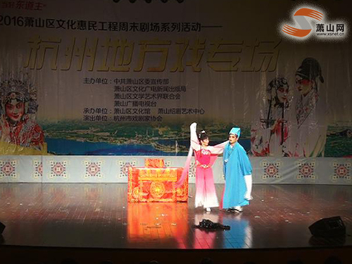 (萧山网讯) 3月26日晚7点,杭州市戏剧协会走进周末剧场,为萧山市民带来了精彩的越剧折子戏表演。6点30左右,有不少居民拿着社区分发的门票,走进了周末剧场的大门,他们带着同社区的好伙伴一同前来观看演出。有不少居民听到今晚上演的是越剧折子戏,显得特别开心。