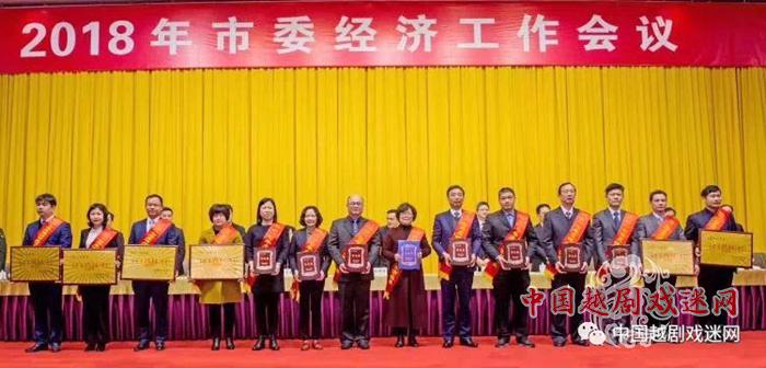 朱杭灿团长(左七)上台领奖112年了,越剧与嵊州水乳交融,嵊州市越剧团作为越剧诞生地的专业剧团是健硕的根、是繁茂的叶。2018,继续向前进发!