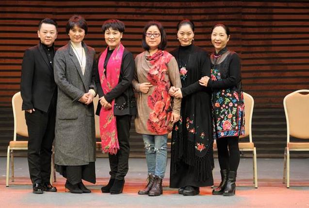 六位中国梅花奖得主来台演出越剧,左起徐铭、单仰萍、陈雪萍、郑国凤、李敏、谢群英。