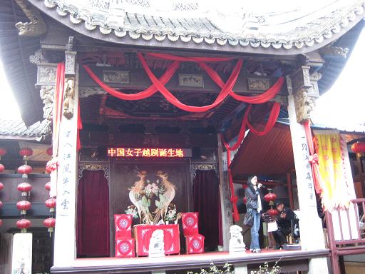 在东王村一角有一处陈列室,里面保存着搭建第一个舞台所用的木板,第一次演出时所穿的衣服,表演时所用的道具。在今天看来,这些东西是简单粗糙的,但是越剧历史赋予了它们不可替代的意义,见证着越剧发展的历程。
