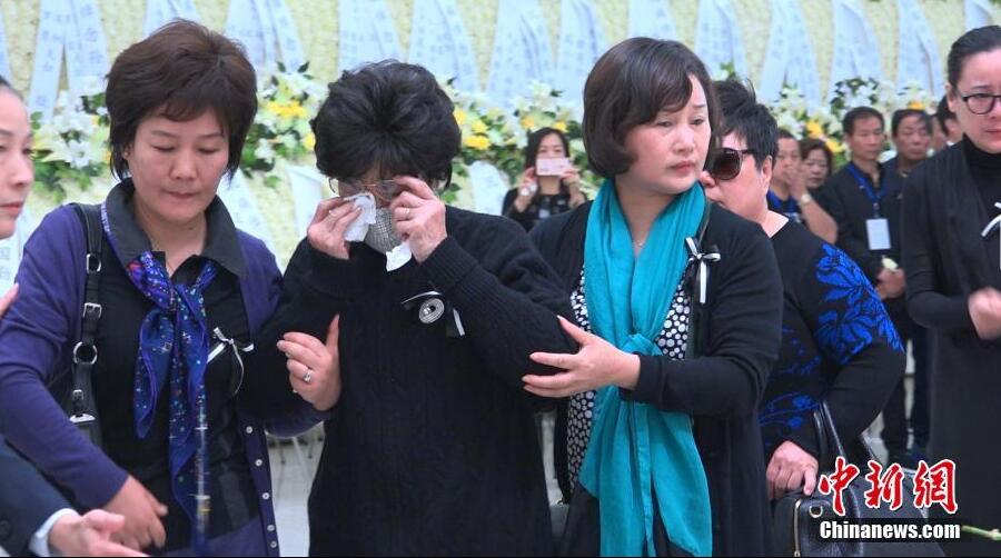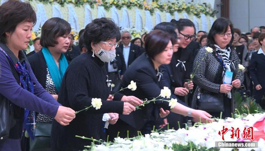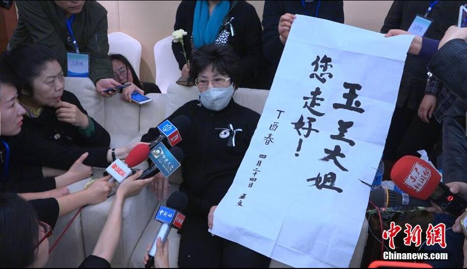 中国著名越剧表演艺术家、越剧“徐派”创始人徐玉兰4月19日在上海华东医院与世长辞,享年96岁。4月25日,上海各界人士手持鲜花来到上海龙华殡仪馆,送别心中最美的越苑“宝哥哥”,91岁高龄的“林妹妹”王文娟(左三)前往送别。中新社记者康玉湛摄