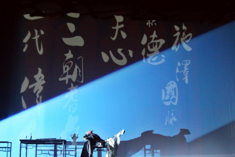 和传统越剧偏具象场景化的舞台效果不同,导演韩剑英在此次《青藤狂歌——徐渭》的舞台上运用了多媒体动画投影技术,盘错的青藤、巨大的投影幕布、投射的人物剪影,都以一种创新的舞台艺术适应现代观众,尤其青年观众的审美。