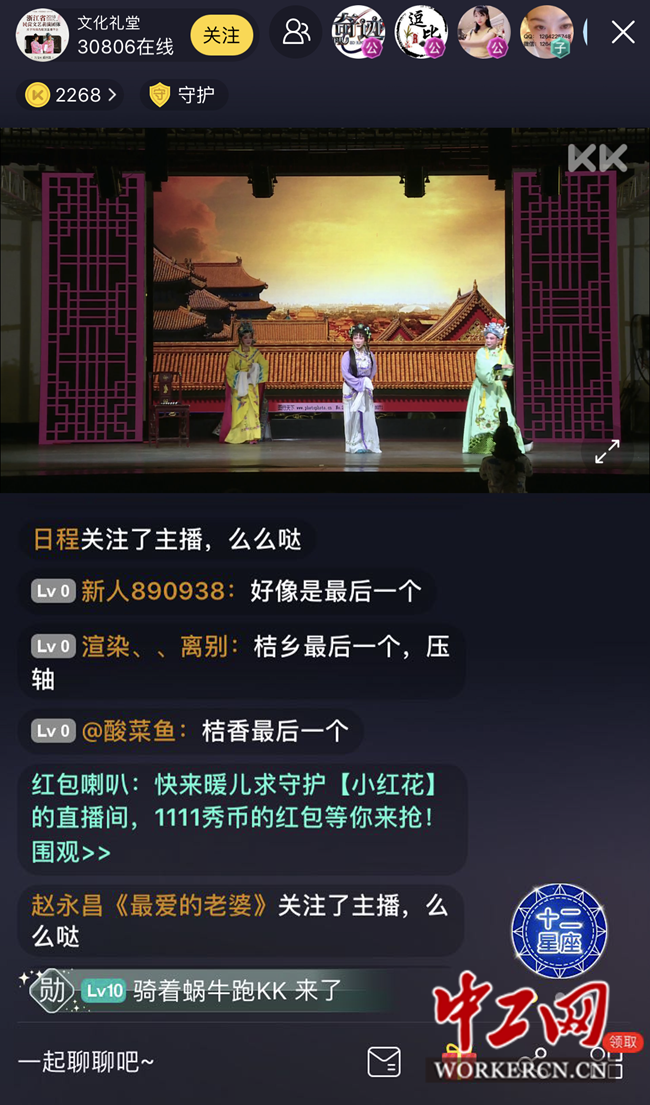 KK直播推出“直播+文化礼堂”为乡村文化“圈粉”中工网讯(记者徐新星)“晚上演出时间还没到就已经有很多戏迷发微信给我,让我发直播链接给他们,早早的就等着看直播了,直播开始后人数一直飙升,将近4万人观看演出,这个数字是非常惊人的。”7月25日,在一场有关直播能否助力乡村文化发展的主题论坛上,浙江省永嘉县红楼越剧团团长周海芳对于剧团最近一期搭载网络直播的折子戏精品展演活动的效果非常满意,“说明这种直播+文化礼堂的形式是非常受欢迎的。”据了解,浙江省自2013年起推行“文化礼堂”建设,在全省农村地区建设起基层文化平台,依托农村文化礼堂将戏曲等传统文化输送到乡村,丰富村民的精神文化生活。今年7月,“文化礼堂”开始借力网络直播,其中,2018浙江省民营文艺表演团体折子戏精品展演活动将戏台同时搬到网上、手机端,通过KK直播平台独家直播传播传统文化。那么,这种形式能否更好地助力乡村文化发展,为乡村文化“圈粉”?对此,原浙江省文化厅艺术处处长、戏曲评论家周冠均表示,这一次浙江省文化厅主办、浙江艺术职业学院和各地文广新局承办的民营剧团展演,借助文化礼堂、网上直播是很好的办法,“现在的年轻人忙于工作和其他各种各样的活动,很难有整块的时间走进剧场、走进文化礼堂,借助直播,年轻观众能够非常方便地了解民营剧团的演出,以及演出所传达的中华传统文化的经典,现代的传媒手段给年轻人提供了走近中国传统文化的非常好的桥梁。”据KK直播平台相关负责人祝凯宇介绍,7月12日,该平台第一次把“文化礼堂”搬到线上,对衢州工人文化宫的折子戏精品展演活动进行全程直播,之后还对温州永嘉县人民大会堂和绍兴灵芝镇大树港村文化礼堂的戏曲展演活动进行直播。“几场直播下来,没想到现场观众和直播间用户的反馈都不错。现场观众还把直播间的二维码分享到戏迷群、朋友圈,很多不能到现场的戏迷就能通过直播平台看到戏曲展演活动。”