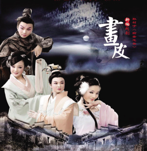 越剧《画皮》由上海越剧院的青年演员陈湜、齐春雷、徐标新、邓华蔚联袂主演,邀请了曾导演豫剧《程婴救孤》《村官李天成》等剧的张平执导。虽然取材于《聊斋志异》,但越剧《画皮》的剧情走向与电影版的《画皮》更加接近一些,并增加了狐仙与书生前世的一段情仇故事:狐仙小雪被书生王冬郎所害。蛇仙小黑护佑小雪精魂,重新修炼。五百年后,王冬郎转世为知府王存义。为报仇,小雪乔装入王府,色诱王存义。谁知王存义爱妻至深。小雪以杀王存义相要挟,逼迫王妻喝人血变妖……