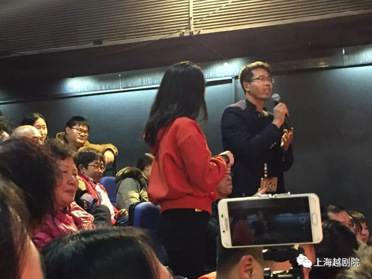 ▲热情的北京观众精彩的表演、流派韵味浓厚的唱腔、特色鲜明的音乐及舞美呈现,让《洞君娶妻》得到了北京观众的认可。演出结束后,编导及演员们又特地留下,在演后谈环节和在场观众进行互动。其中既有观众对该剧主旨的思考,“我特别高兴在这里看了一场越剧,王柔桑和盛舒扬是我非常喜欢的演员,几个流派的唱腔听上去也很过瘾。但我最想说的是这部戏要表达的主旨,芷兰是个好女孩,她追求理想的爱情在我看来没有错,但故事的结局苦良的行为让她有些动摇,似乎有些让人意外。”对于这个问题,我们年轻的编剧莫霞回答说:“其实大部分人曾经历,谁的心里没有住着过一个洞君,又是谁的身边没有一个苦良?《洞君娶妻》所讲述的追求理想爱情故事,是经历也是成长。”又有观众通过本次小剧场的探索,提出“通过《洞君娶妻》对不同演绎题材的开发,上海越剧院是如何保持越剧的独特性、先进性?以及对未来的发展有何感想”的问题。对此,导演张磊就“每个艺术形式都有其独特的呈现方式,有擅长的风格导向。《洞君娶妻》追求的是当代戏曲美学的呈现,它在越剧的呈现方式上追求与观众的契合,是把越剧最擅长的展现给观众。”更有从宁夏专程赶到北京观看的《洞君娶妻》的观众,非常务实地问到,上海越剧院有没有到西北巡演的计划?(是不是很多人也想知道?!)上海越剧院副院长梁弘钧“一定会把越剧带到大西北,带到全国,明年已有全国巡演的计划。”的回答把全场气氛推到了顶点。