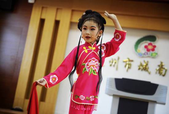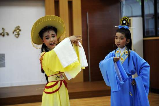 嵊州把越剧引入小学校园,让孩子们从小就接触越剧文化,受到熏陶。