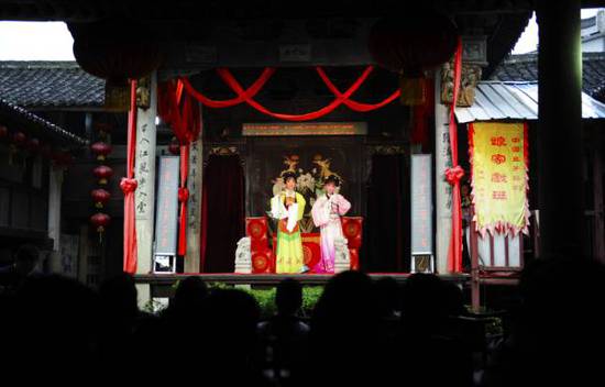 越剧诞生地——嵊州市东王村。最早的越剧全部由男艺人扮演剧中角色(4月21日摄)。