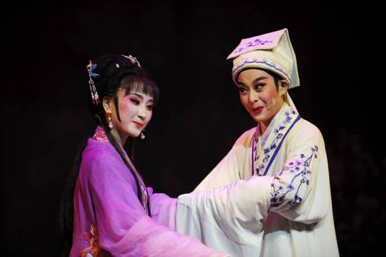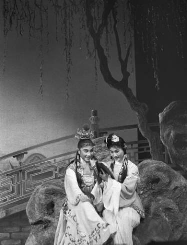越剧《红楼梦》“读西厢”一场:徐玉兰饰贾宝玉,王文娟饰林黛玉。新华社记者陈娟美摄