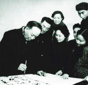 1950年春天,上海联合女子越剧团来津演出,在劝业场天华景剧场安营扎寨,连续演出三年经久不衰。当时谁也没想到,这个优秀的越剧团,三年后便更名为天津市越剧团。为什么?因为1953年上海联合女子越剧团出色地完成了文化部派遣赴朝慰问中国人民志愿军演出之后,经天津市人民政府文化主管部门批准,留在天津建立了“天津市越剧团”。那时,天津市越剧团的水平很高,曾几进中南海怀仁堂为中央首长们演出,越剧团少年队也曾在人民大会堂的小礼堂为中央首长演出。周恩来总理、郭沫若副委员长曾多次到剧场观看他们的演出,每次都非常亲切地接见演员。1958年春天,天津市越剧团在北京东安市场内的吉祥戏院演出。郭老看完演出走进休息室,演员们十分高兴,争着与郭老交谈。就在这时,有位演员试探着向郭老提出了一个请求,想请他为越剧团题词。郭老欣然应允,并请团里的领导把纸和笔拿来。这下剧团和剧场的宣传部门“抓瞎”了,一是没想到郭老这么平易近人,说写就写,他们根本没有准备;二是此时已夜深人静,街面商店早已打烊,没处去买笔墨纸砚。情急之下,剧场经理从办公室找来半张宣纸和笔墨,众人抬来一张桌子,把纸铺好。这时,郭老稍加思索后起身握笔,一挥而就写下了四句话:“看了《落绣鞋》,又看《麒麟带》,朵朵鲜花令人爱,祝你们和春风常在。”1960年年初,天津市越剧团又到北京演出新编历史剧《文成公主》。赴京前,团里特意联系了郭老的秘书,想请郭老看戏指教,与此同时又提出了请郭老题字的请求。没承想,郭老在百忙的工作中如约而至,而且看完戏走上舞台,在剧团准备好的宣纸上挥毫题词:“八千里路赴逻些,巾帼英雄事可夸,远昭明妃传妙曲,中原人物到天涯。”郭老题写之后,又一字一句有停有顿地读给大家听,然后笑着说:“怎么样?可以吧?”周围人激动地边鼓掌边说:“好!好!”当时有人对“八千里路赴逻些”一句中“逻些”二字不明白,郭老听后笑了笑说:“不要说你不明白,恐怕好多人都不明白,逻些是唐朝时的地名,就是今天的拉萨。”听了郭老的解释,众人豁然开朗,深感郭老知识的渊博,同时也觉得应该更多地学习历史知识。郭老为天津市越剧团的第三次题词是1960年5月。当时天津市越剧团曾计划以“庆祝越剧来津十周年暨少年训练队建队一周年”为由,邀请市、局领导和专家学者以及有关单位和部门,举行一次较大的庆祝活动,以进一步扩大越剧在北方的社会影响。这个计划已报领导机关批准。在拟办过程中,我们以剧团的名义给郭老写了一封信,说明上述意愿并请郭老题写祝词以作纪念。不久郭老便寄来第三次题词。这次题词是用毛笔写在中国科学院的信笺上的,原文是:“十年一弹指,南花已北移,还当更努力,硕果满新枝。”虽然那次庆祝活动因故搁浅,但郭老为天津市越剧团三次题词的内容,新闻媒体均有过报道,知之者甚多。郭老这三幅题词的第一幅,只是拓裱了一次而未及装裱,由后任团长的赵风同志代赠给天津市戏剧博物馆。目前,其复制品提供日常展览,经常和观众见面,第二幅与第三幅在“文革”中不翼而飞,至今下落不明。题图为郭沫若为天津市越剧团题词