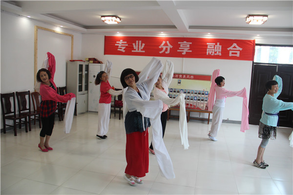 “鲤仙修道碧波府……”近几天,位于儒岙镇南山村的悠见南山民宿中,时时传出悠扬婉转的越剧唱腔,原来,是国家一级演员、王派弟子王学飞带领一群来自全国各地的越剧爱好者在此学习,九位越剧爱好者在王学飞的指导下,从手眼身法步,到唱腔、念白,都认真学习琢磨。