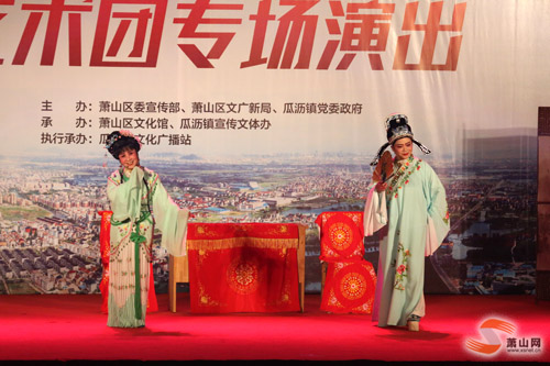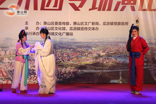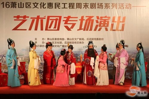 萧山网讯4月1日晚,“办好G20、当好东道主”2016萧山区文化惠民工程周末剧场系列活动——艺术团专场演出在瓜沥镇东方村精彩开演。来自瓜沥镇艺术团的戏剧演员们为现场观众献上了精彩纷呈的越剧盛宴。