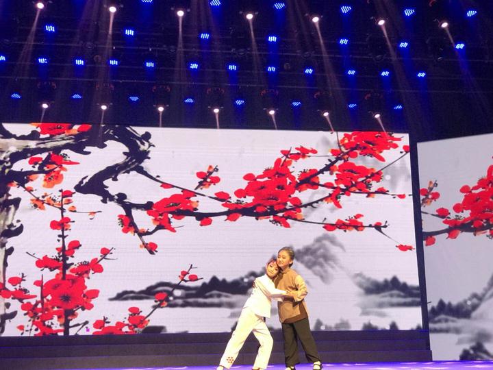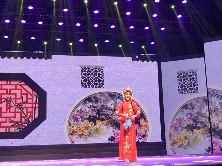 【19:53】小梅花荟萃展演开始,展演序曲是由浙江嵊州罗星幼儿园孩子们带来的越剧《戏娃情》。