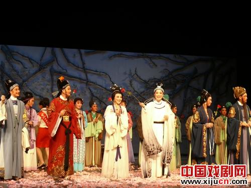 该剧讲述了宋朝诗人陆游与表妹唐琬的爱情故事,陆游与唐琬伉俪情深但横遭陆母拆散,在分离三年后,两人蓦然在沈园重逢,漫天落花中,男女主角各自吟唱一阕《钗头凤》,这一幕给现场观众以极大的艺术和情感震撼。“小百花”主创在演绎凄婉爱情的同时,也力图表现男主人公陆游的立志报国却壮志难酬的处境,在古琴弹奏中,一曲《卜算子·咏梅》吟唱出了诗人“无意苦争春”的高洁情怀。