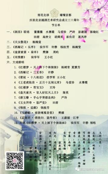 本次活动将集越剧演出与历程回顾于一体,特邀北京电视台“欢天戏地”节目主持人孔洁担当主持。届时,北京越剧艺术研究会会长王蔚丽所著的新书《北京越剧人》和记录越研会三十年史料的画册《南花北移 璀璨京都——北京越剧艺术研究会成立三十年纪念册》也将在现场与观众见面。