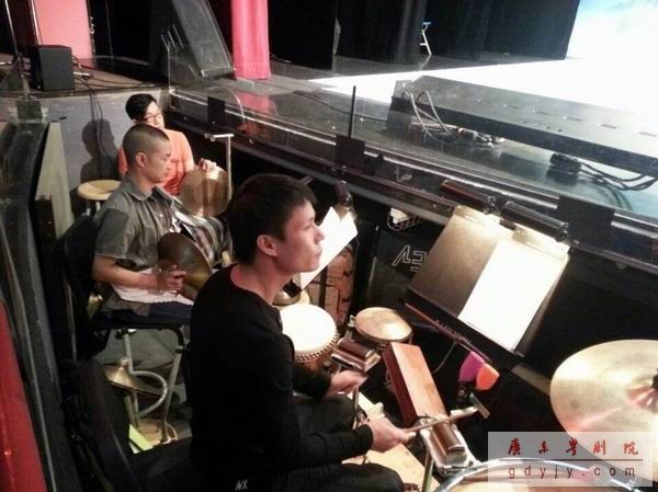 我院两位音乐师傅--朱伟平,梁峰与当地乐社合作,为演出伴奏