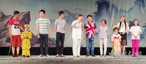 接着也是该校的两个戏曲节目《红鸾喜》和《沙家浜之智斗》。只见演出《红鸾喜》的小演员时边甩水袖边演唱,婀娜多姿;而在演出《沙家浜之智斗》时小演员们表现得淡定老练,一看就知道平时训练有素。