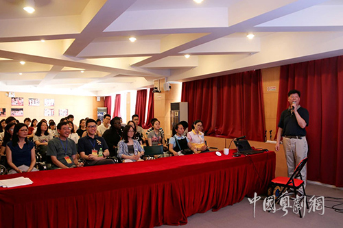 当日下午,研修班全员冒着酷暑赶到江南大戏院观看广州粤剧团演出的大型新编粤剧《鸳鸯剑》。演出前,研修班师生在青年演员洪林富的带领和讲解下,到后台了解粤剧的化妆、服装、演奏、舞台布景等。随后,大家认真观看了《鸳鸯剑》的演出。师生们被该剧庞大的演出阵容、精湛的表演所折服,纷纷给予了热烈的掌声,并上台与演职员进行了合影。