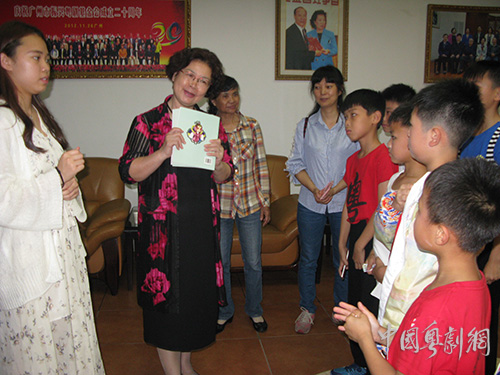 “三元杯”粤剧粤曲大赛参演之后,从化街口粤剧协会小红豆艺术团《沙家浜》剧组的工作人员和小演员还到访广州振兴粤剧基金会,基金会苏小玲秘书长听取从化协会荣誉会长姚冠冰和会长邝玉莲的汇报,了解从化小红豆粤剧培训班和粤剧进校园工作进展,观看小红豆学员们排演新剧目的成效,向孩子们发送粤剧宣传画册,并表示继续支持从化粤剧进校园,加派老师指导小红豆培训和排演剧目。从化协会邝心怡刚从粤剧学校毕业,回到家乡担任从化小红豆的艺术指导,苏小玲秘书长亲切勉励她工作实践中累积经验,成长进步,为粤剧艺术的传承发展作出贡献。