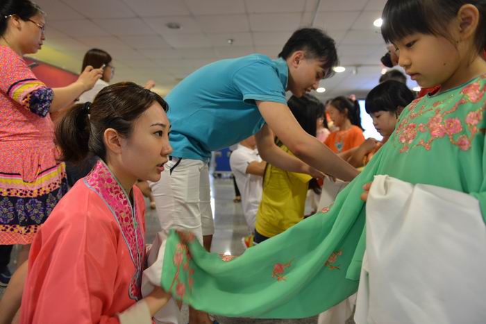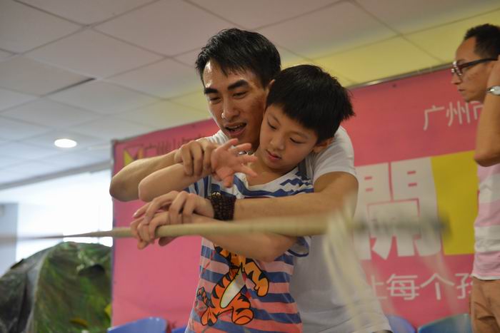 讲座以一个充满趣味性的互动游戏“传球”开始,文汝清老师将粤剧大架“云手”、“拉山”、“踏七星”融入其中寓教于乐,小朋友倍感兴趣。随后通过粤剧历史发展概况讲解,视频片段展示和“水袖功”、“把子功”的互动教学, 50位小朋友及家长与粤剧“零距离”接触。