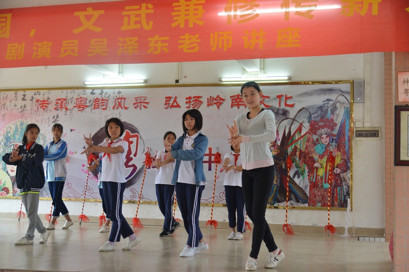 吴泽东精彩的讲解和表演赢得同学们热烈的掌声,更有不少当地其他学校的老师、粤剧“发烧友”慕名而来。