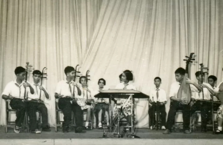 广州音专附中时期,“红领巾乐队”演奏《喜洋洋》,前排左二为卜灿荣