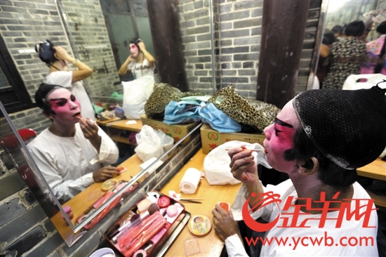 虽是业余,但粤剧社成员化妆却画出专业水平