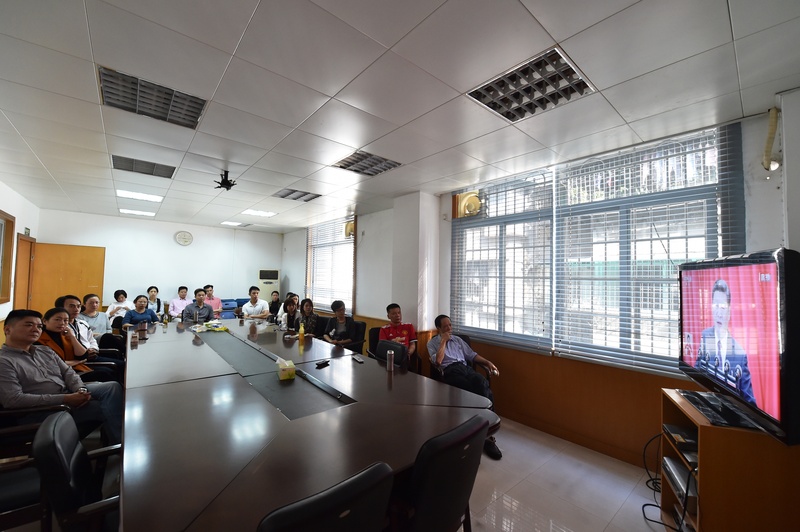 2017年10月18日早上九点,广东粤剧院党委组织全体党员及中层以上干部集中在会议室,观看了中国共产党第十九次全国代表大会开幕会的电视实况直播,在党委书记曾小敏、副院长胡广文、纪委书记徐光华的带领下,大家认真学习了习近平总书记在开幕会上作的题为《决胜全面建成小康社会,夺取新时代中国特色社会主义伟大胜利》的重要报告。