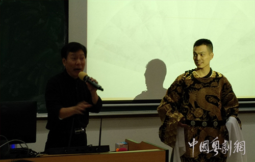不同时代特有的审美,都是这个时代哲学、文化和科技大背景下的人文选择。粤剧戏服作为特定的审美载体,其发展记录着广府地区上述各方面的更迭变迁。我们在跟随本次讲座的步履,领略粤剧戏服独特之美的同时,感受广府地区人文环境的风云变幻。讲座中,何车老师以生动活泼的形式向同学们介绍了粤剧戏服的功能作用、粤剧戏服的材料与制作、粤剧戏服的发展等方面内容。在何车老师妙语连珠的引领下,同学们走进色彩斑斓的粤剧戏服世界,充分感受粤剧戏服之美。崔振强老师、曾沛成老师、唐沛文老师等更启动了精彩的粤剧戏服展示环节,同学们纷纷上台试穿戏服,把现场气氛推向高潮。
