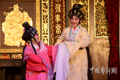 这场汇报展演共有6个节目,开头由9位幼儿园可爱的小朋友边舞边唱少儿粤曲《大红花》,果然似模似样;接着由杨子妮的一批学生分别演出了折子戏《柳毅传书之花好月圆》、《牡丹亭之游园惊梦》和唱出粤剧《刘胡兰》的主题曲及粤曲《东湖春晓》(以上均为林小群代表作,特别《花好月圆》,听出演花旦的很用心学习林小群的唱法,演小生的唱来也有“虾腔”的韵味),而作为晚会压尾的重头节目是由杨子妮与杨美(也是林小群的弟子)合演林小群的戏宝《拜月记》中的一折,两个花旦配合默契,演来颇为出彩。