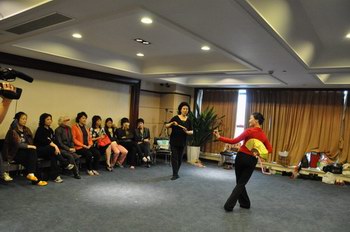 早上九点,女姐来到繁荣粤剧基金会总部,探望了老旦、青衣、老生、丑生的老师和学员,与他们进行交流后,又冒雨赶到广东粤剧院的教室慰问了小生、武生、花旦的老师和学员。每到一个教室,教室内都响起了阵阵掌声,感谢女姐的关心之情,女姐说:“这掌声是属于老师们的,老师们辛苦了!同学们要珍惜这个机会,好好学习,要不断进步!” 女姐和老师们已是多年的朋友,这次的重遇,是激动、是怀念。在老师的带领下,同学们向女姐汇报了这一个星期的教学成果。女姐鼓励同学们说:“今天要努力,明天要勤奋,以后要坚持,在粤剧事业上,我们要有持之以恒的献身精神!”