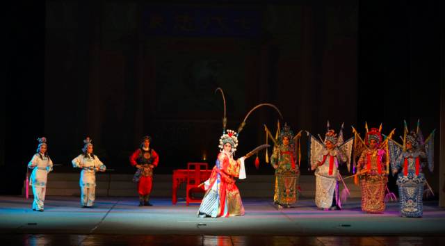 整场晚会丰富多彩,《绝情谷底侠女情》演绎杨过和小龙女绝情谷重逢的缠绵柔情,“梁祝”之《回十八》、《楼台会》演绎梁山伯与祝英台千古传唱的凄美爱情,《战冀州》演绎马超城下三摔,《新霸王别姬》演绎西楚霸王和虞姬的生死绝恋,《黄飞虎反五关》演绎黄飞虎举旗造反,讨伐纣王……七出折子戏,段段精彩。