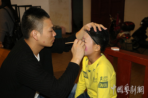 著名粤剧老师陈小刀老师正在为同学们化妆