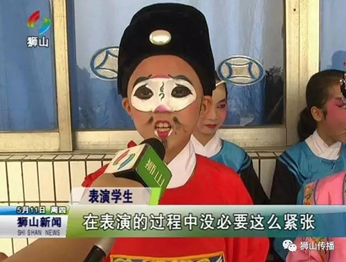 莫正翔同学接受狮山电视台的采访(图片来源于狮山传播微信公众号)