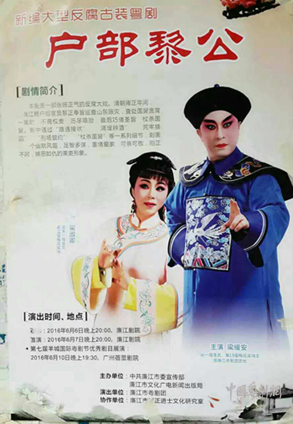 由广州文学艺术创作研究院国家一级编剧梁郁南执笔编剧并执导的粤剧新作《户部黎公》,再与梅花奖得主梁耀安、梁淑卿再一次完美合作!本剧将于于六月十日晚与广州观众相约广州蓓蕾剧院。