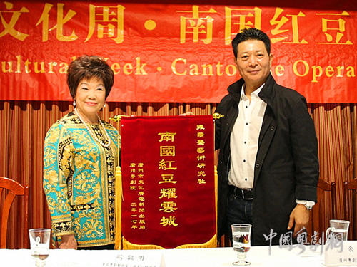 当日,温哥华振华声艺术研究社专门为交流团设了欢迎会。欢迎会上,广州粤剧院董事长、广东八和会馆名誉主席余勇代表广东八和会馆向振华声艺术研究社赠送了牌匾,此举表示广东八和会馆正式在温哥华建立官方联络处。粤剧艺术名家、广州粤剧院总经理欧凯明则代表广州市文化广电新闻出版局及广州粤剧院向振华声艺术研究社赠送了“南国红豆耀云城”的锦旗,以示双方深厚友谊。