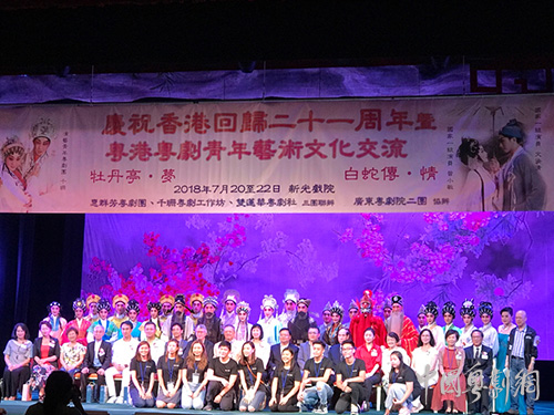 由香港惠群芳粤剧团、千珊粤剧工作坊、双莲华粤剧社联合主办;广东粤剧院二团协办的“庆祝香港回归二十一周年暨粤港粤剧青年艺术文化交流”,于2018年7月20日至22日一连三晚在香港新光戏院隆重举行。