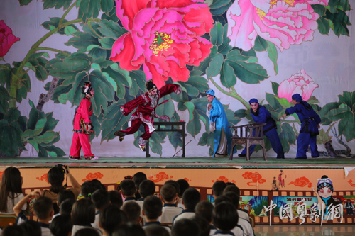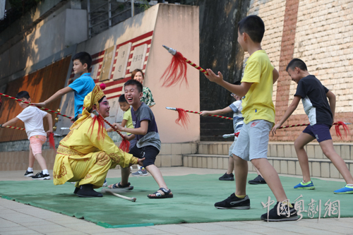 2017年10月10日至12日,广东粤剧院“粤剧进校园——折子戏专场”于佛山市里水和顺中心小学、西樵第一小学、大沥水头小学顺利开展。广东粤剧院二团国家二级演员翟春燕,优秀青年演员潘健、麦少聪、符卓彦、徐济开、苏临轩、朱晓琪、莫翠屏、朱建豪、陈思杰、李德浩、李源斌、卢江、林飞鸿、文佩如等为近三千名师生献演《天女散花》、《七姑奶开店》、《三岔口》、《投江》、《芦花荡》等节奏鲜明、诙谐有趣的粤剧折子戏。
