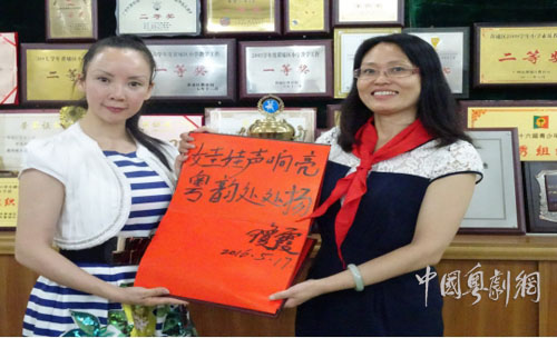活动后,琼霞老师亲切地对我们说:“粤剧现在面临最大的危机就是观众老年化。如何让年轻一代的孩子们继承与发扬粤剧艺术,是我们粤剧教育亟待解决的问题。所以,在粤剧教学中我们必须处理好继承与发展的关系,继承是根本,发展才是硬道理!”相信在琼霞老师的指导下,在众多专业老师的共同努力下,我校的粤剧特色教育工作一定会硕果累累,再上一个新台阶!