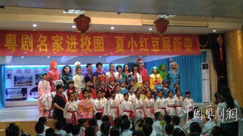 现场活动中,我校三个节目演出高潮迭起,粤剧粤曲氛围令人感动兴奋,“粤剧进校园”所产生的影响力越来越大,所收到的效果也越来越明显。小红豆演员们上大妆、穿戏服,在台上展示出较为扎实的功架,充分体现岭南文化瑰宝传统粤剧在中小学校生根开花,在小学生当中得到继承和发扬,南国红豆茁壮发新芽,生机勃勃,日益兴旺。