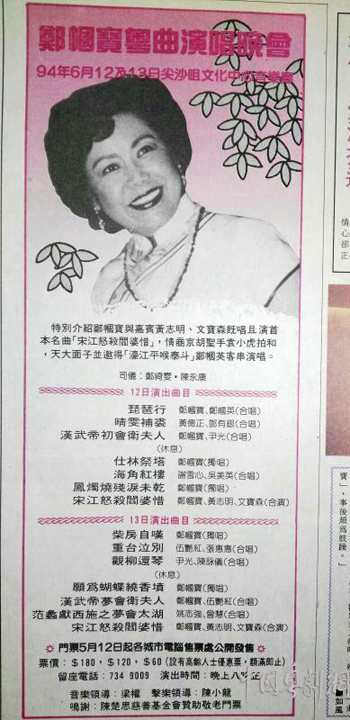 郑帼英参与姐姐帼宝在香港文化中心的演出广告。