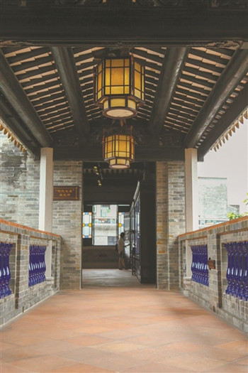 踏进大门,一个并不算大的院子四四方方、恬然宁静,院内两边各有一株郁郁葱葱的老树,一边是桂花树,另一边是三稔树,微风吹过有粉色的花蕊掉落在地。院子尽头是祠堂的大厅,大厅两侧一副对联写着:赛龙歌夺锦,晓梦听啼莺。两首广东音乐《赛龙夺锦》《晓梦啼莺》皆在文中,足见建筑与众不同的音乐色彩。