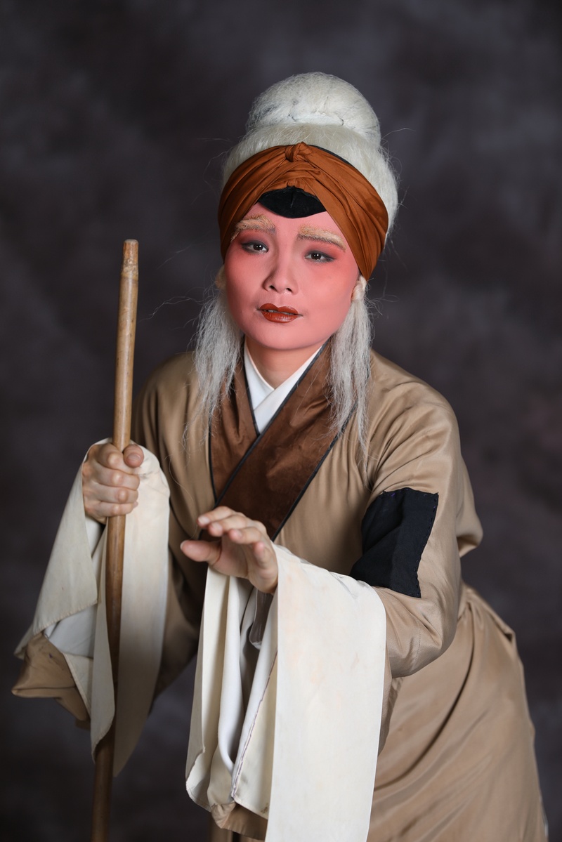 再者,这个戏的“眼神”尤其讲究,“睁大眼睛而不能对焦的盲,所谓‘睁眼瞎’,它最真实、最贴切,难度也是最高的。”李母因思念李逵,日夜以泪洗面,导致双目失明。“当李达连李母最后一件衣裳——遮羞布都拿去典当的时候,李母的表情是惊讶及不敢相信的。初初排戏时,我常常因为眼睛有神而跳戏。要将眼神与唱腔、身段、情感糅合起来时,难度就更大了。”