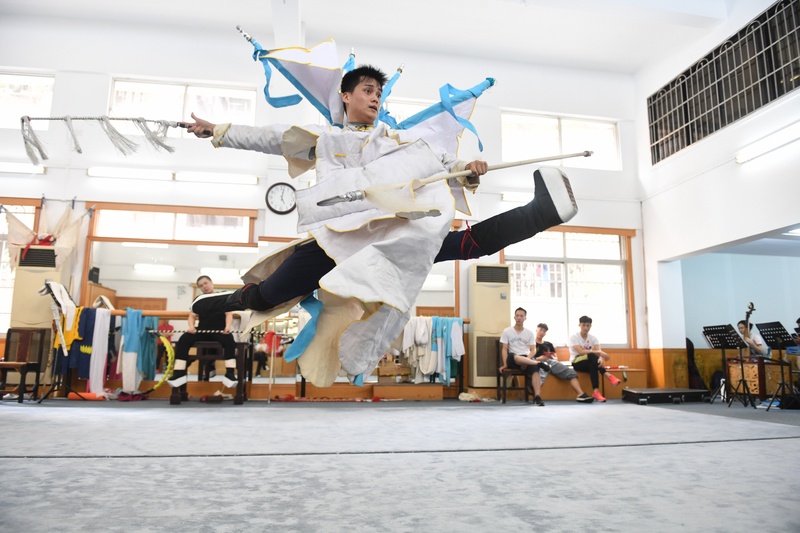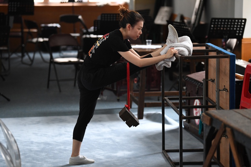 赛前数月,排练场每晚都是灯火通明,在这里不难发现临轩挥汗如雨的身影。直至深夜十一点,高强度的训练使他感到眩晕,临轩也毫无懈怠之意。这点苦累他早习以为常,因不愿放过任何练功的机会,哪怕在接受采访时也不忘靠着墙边压腿。而对于成绩的期许,临轩却看得淡然。“要是总想着拿奖就等于先输了一半,还是先练好自己的功吧,别去想最后的结果如何。”