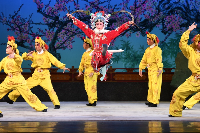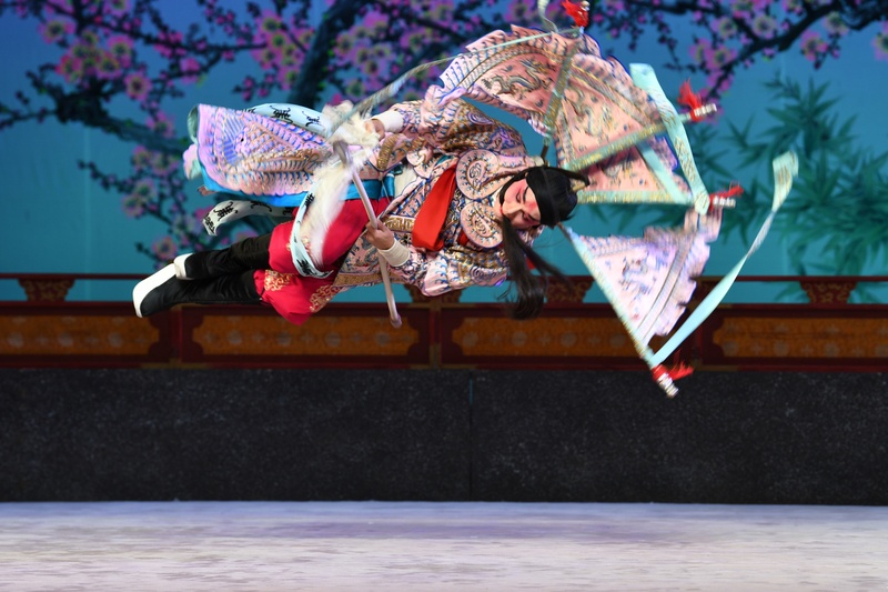 《子都惊魂》是文汝清首演的粤剧折子戏,亦文亦武,重在以戏曲程式与面部表情刻画人物的心理活动。技巧上也不简单,要身穿大靠以“无手半边月”从一米九的高台上翻下,还有“倒吃虎”“扭丝540度”“探海360度摔地”等高难度动作。再加在历届大赛中,多位新秀文武生都曾演绎此剧,这就对飞鸿提出了更高的要求——灵活的表演,扎实的功夫,还须在学习前者的基础上发挥自己的优长。