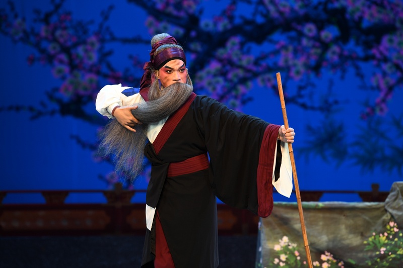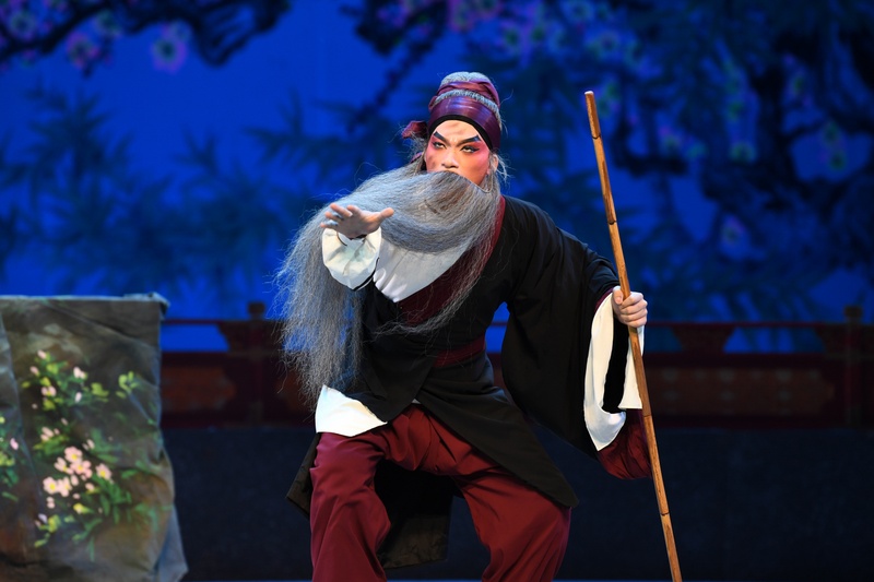 粤剧折子戏《劫难父子》脱胎于莎士比亚的名作《李尔王》,经过余楚杏、文观堃和潘健的编、导、演三度创作进行本土化,成为大赛中的一道新颖风景。潘健分饰父子两人,以一根棍子衔接两个人物、三个角色(郭嘉乔装前后可算两个角色),灵活运用老生、小武和文武生的表演程式和不同的音色、语气、语调,实现各种身份的交替变换。排演如此高难度的原创剧目,对潘健来说是一个更高层次的挑战,也是一个锻炼自我的良机。