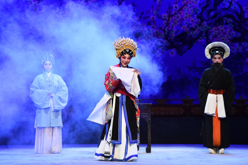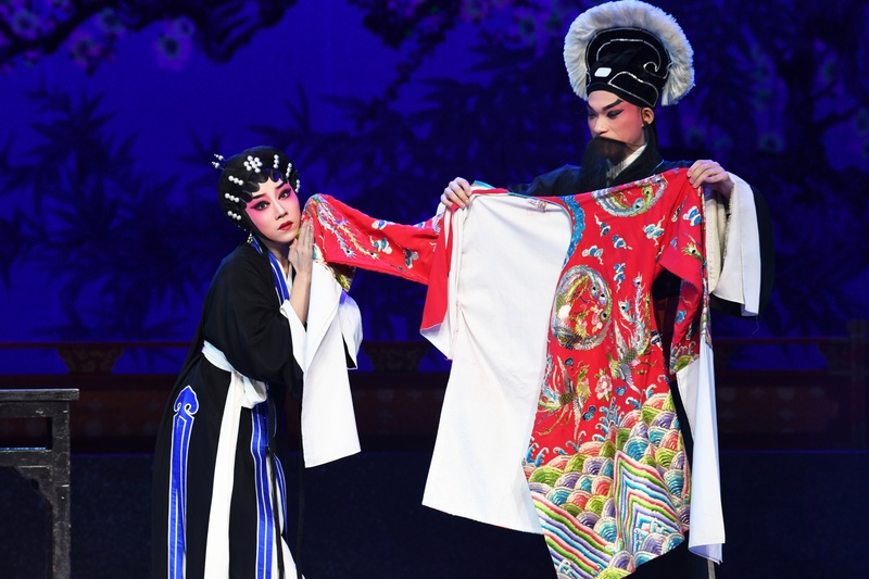 应工青衣、老旦行当的梁妙婷,以《李逵探母》参加大赛,饰演属于老旦行当的李母。“在未拿到剧本时,就知道这个戏很难。”这个戏的唱腔、身段、感情都十分考验演员的功夫,如散板第一句“牵魂挂望”,要唱出李母对李逵十多年的思念之情,又衣不蔽体、食不果腹的凄凉苦况。所以唱这一句时,声音的运用上不宜过硬,需气息、声音与哭腔的有机柔合。未见其人,先闻其声,未出场就必须引人入戏,引观众随戏或悲或痛,以达到表演者与观演者感情互动的最佳效果。