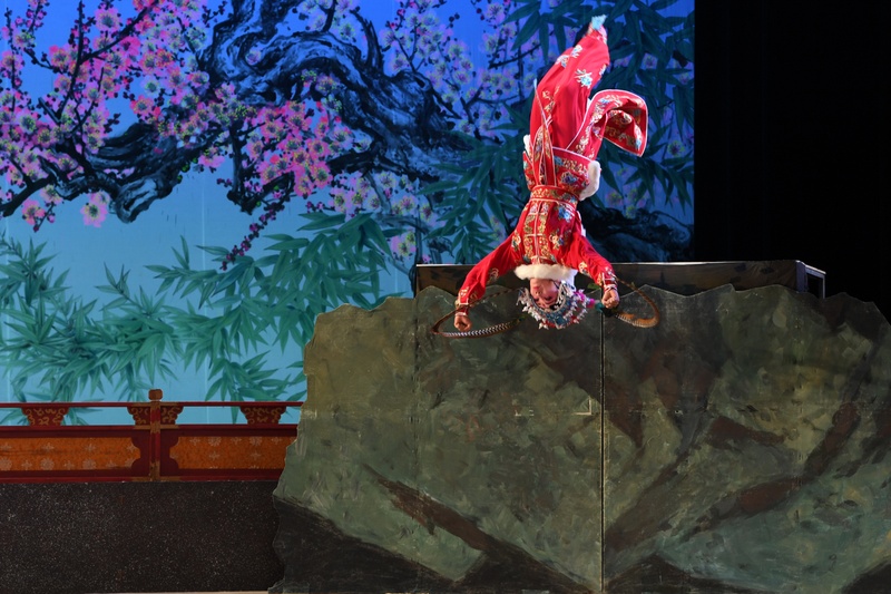 九尾狐的技巧动作最考验演员的把子功。戏中有一段出手荡子,在开打中穿插出手,走起来要如行云流水,力求百击百中,这非常讲究女主角和下手们的配合。“毕竟武戏演员在舞台上会面临各种不稳定因素,能做到零失误其实是很不容易的。”