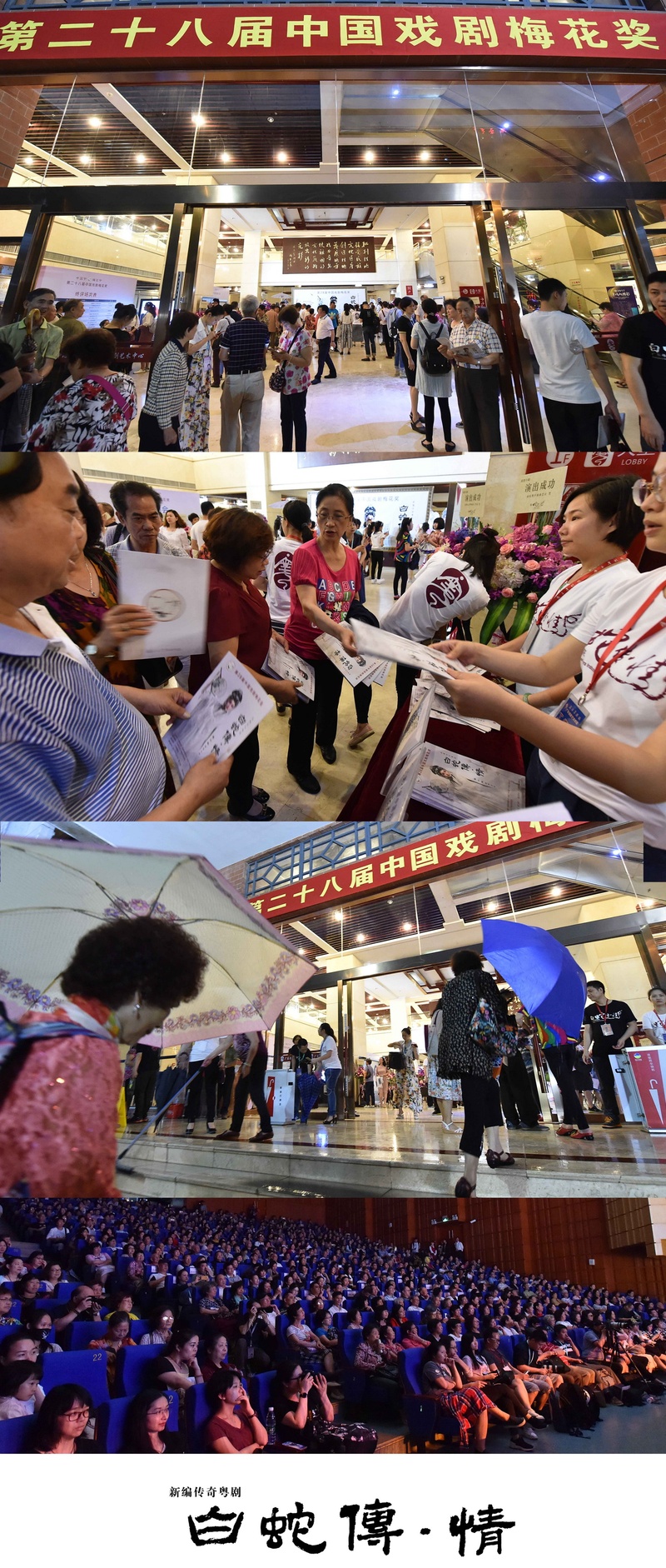 5月15日晚,由广东粤剧院副院长、国家一级演员曾小敏主演的“竞梅”剧目,新编粤剧《白蛇传•情》在广东粤剧艺术中心上演。剧场外,倾盆大雨下得是那么的急,却没有阻挡戏迷如期到来观演的热情,雨点打在戏迷的雨伞上,滴滴答答,似乎是大自然也要开一场充满激情活力音乐会为曾小敏“竞梅”打气,场外一票难求,场内座无虚席。